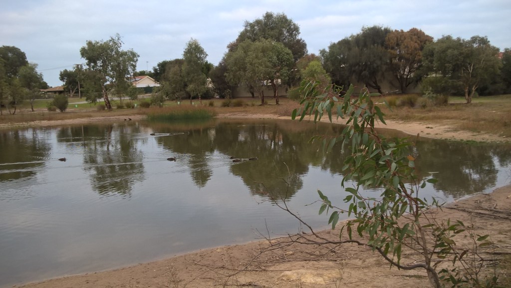 When walking back to the car there was a mother duckling and tiny babies next to the path:
